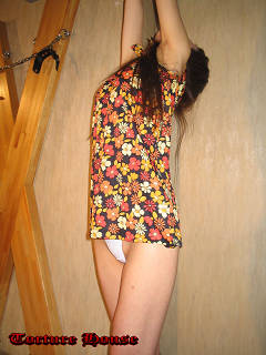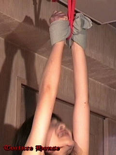 両足は縛られて爪先立ちでかすかに床に着いていた。
