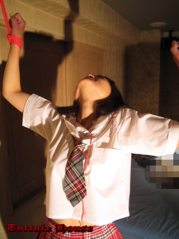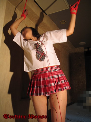 このように。 副校長は電極から伸びたコードが接続された コントローラーのスイッチを押した。 ぎゃあああああああっ!いたいっ! あうっ!あうっ!あうっ! ああああ・・・・・・・・・・ 生徒は電流によって股間と乳首に激しい痛みを覚え、 いやがおうにも反省するというわけだ。 |